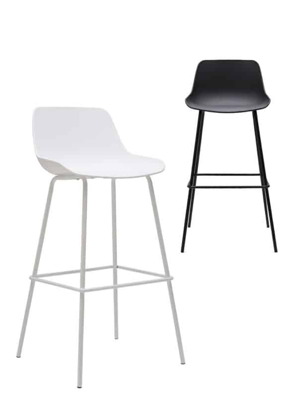 Disponible en color blanco o negro, el taburete Kansas se adapta fácilmente a diferentes estilos decorativos, desde ambientes modernos e industriales hasta espacios más neutros y funcionales.