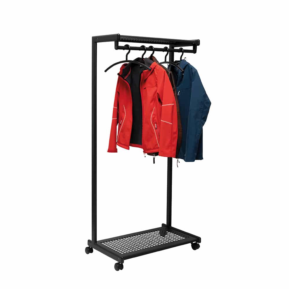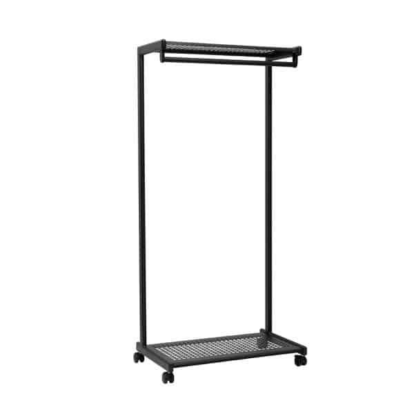 Este perchero no solo es ideal para almacenar ropa, sino que también es perfecto para mantener organizados zapatos y sombreros gracias a su estante integrado.
