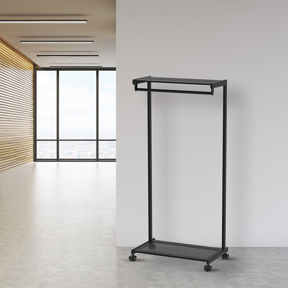 Fabricado con metal robusto, el perchero incluye una barra de colgar resistente a la flexión que garantiza durabilidad y capacidad de carga sin problemas.