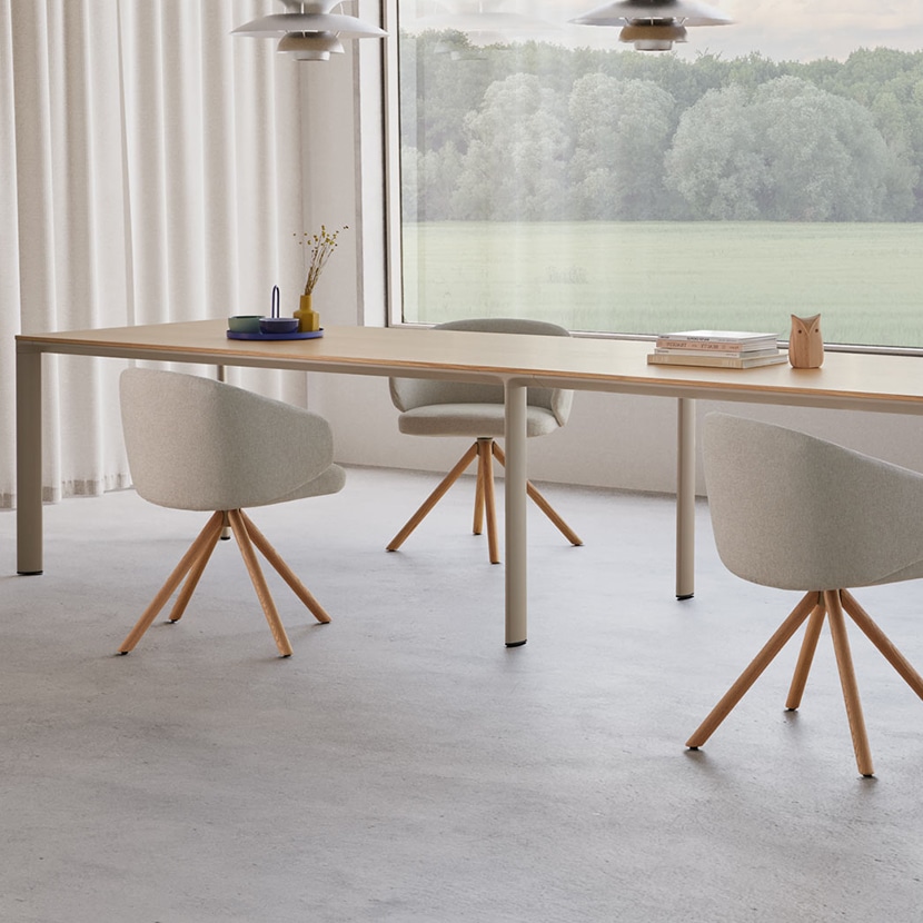Esta mesa Laminar de Inclass es atemporal y se integra perfectamente con cualquier mobiliario de oficina, contract u hogar contemporaneo.