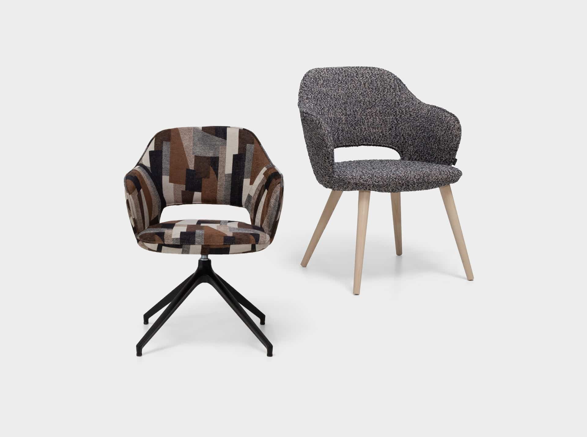 El sillón Paulina Premium de Casual Solutions está formada por una estructura metálica giratoria o patas en madera. Asiento y respaldo  en tapizado grupo Essencial de Casual. El asiento incorpora goma de poliéster de alta densidad (35Kg/m3), ofreciendo un soporte suave pero firme, mientras que el respaldo utiliza goma de menor densidad (28 Kg/m3) para un apoyo ergonómico que se adapta a tu cuerpo. Si quieres otros acabados consulta con nosotros para presupuesto personalizado.