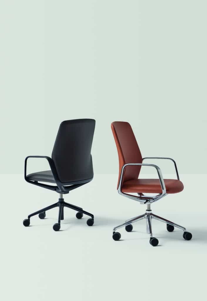 Pensada para adaptarse a los cambiantes estilos de trabajo actuales, la silla Exa ofrece un apoyo dinámico y versátil.